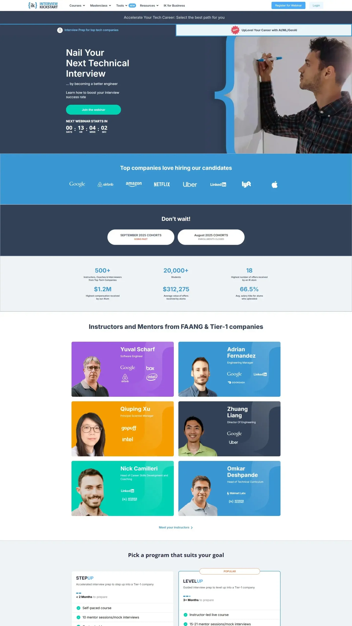 An advanced edtech platform that helps software engineers prepare for FAANG and top-tier tech interviews through structured programs and mentorship.